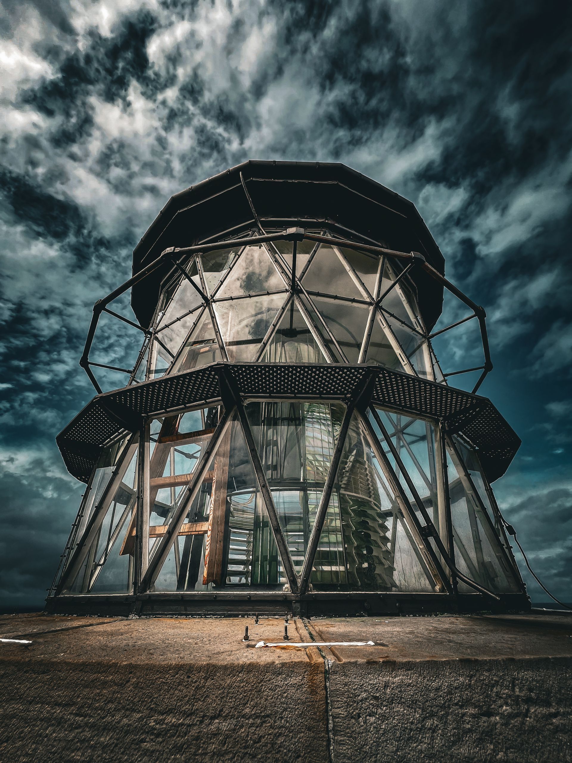 Der Leuchtturm in Hirtshals erhebt sich markant an der Nordseeküste Dänemarks. Besonders auffällig ist die Glaskuppel, die im gedämpften Licht der Nordsee eine fast mystische, kristalline Qualität annimmt. Reflektionen, Lichtspiele und der Kontrast zwischen Glas, Metall und dem rauen Himmel schaffen eine cineastische Atmosphäre, die den Leuchtturm wie einen stillen Wächter über Hafen und Meer wirken lässt. Die Szene vermittelt Ruhe, Isolation und die stille Kraft der Küste.