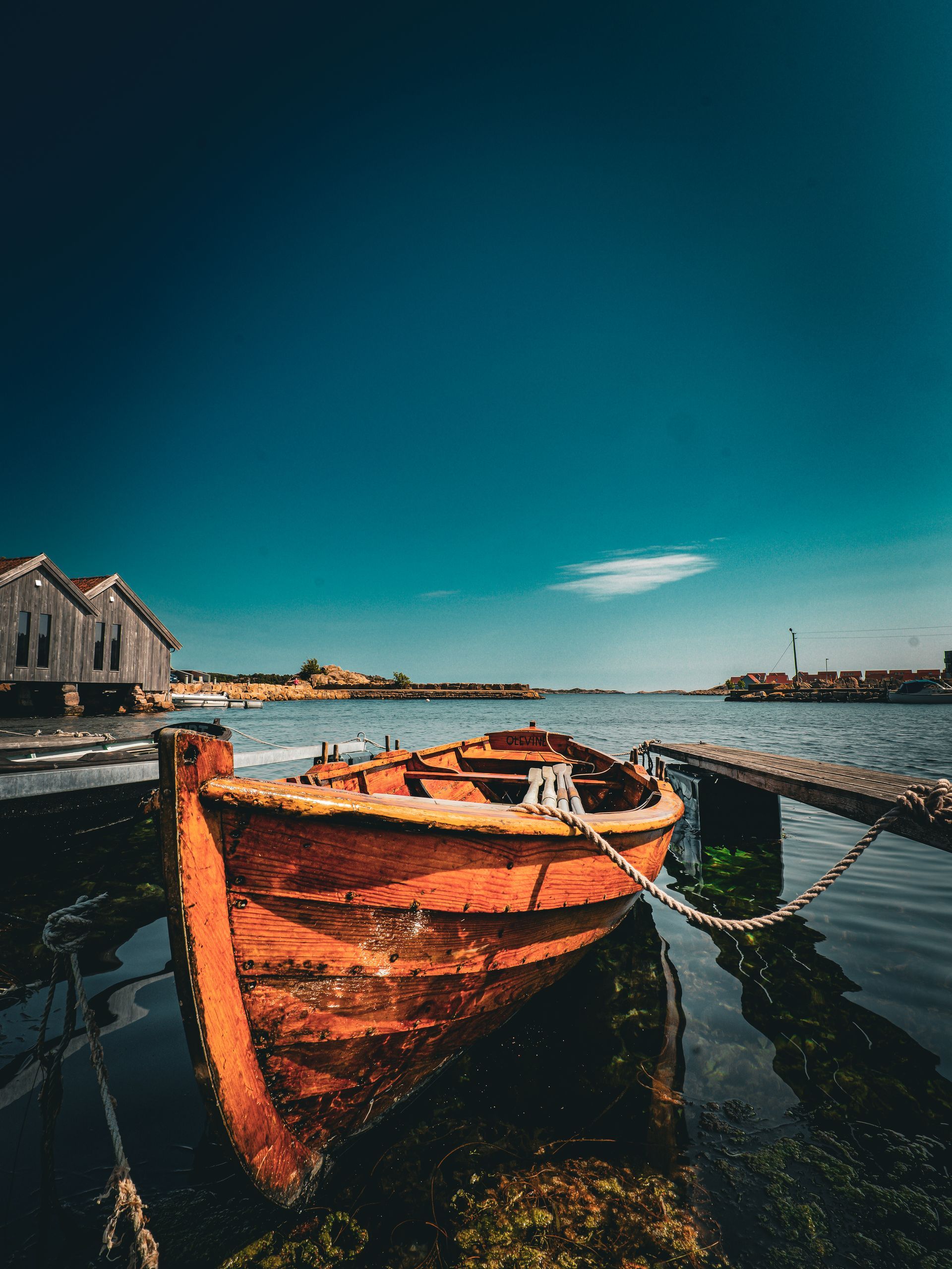 Ein kleines, altes Holzboot liegt still am Steg. Die verwitterten Planken erzählen von vielen Jahren auf dem Wasser, von Wetter, Gebrauch und Zeit. Abgeplatzter Lack und dunkle Spiegelungen im Wasser verleihen dem Boot eine leise Melancholie. Die Szene wirkt ruhig und zurückgenommen – ein Moment des Innehaltens, fern von Eile und Lärm.